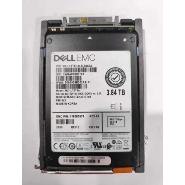 118000633 is a high-performance enterprise grade solid-state drive that features a 12Gb/s SAS interface and a 2.5-inch form factor, providing 3.84TB of storage capacity. This hard drive is equipped with PM1643 enterprise grade disk body, optimized for the 005052556 storage expansion shelf in PowerMax series storage systems, providing high-performance and high reliability storage solutions for critical business applications in enterprises.
