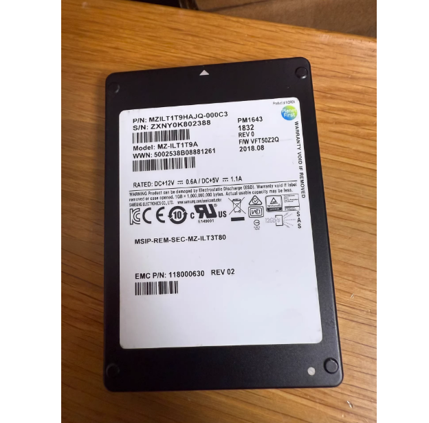 118000518 is a high-performance enterprise grade solid-state drive that features a 12Gb/s SAS interface and a 2.5-inch form factor, providing 1.92TB of storage capacity. This hard drive is equipped with PM1633A enterprise grade disk body, optimized for the 005052319 storage expansion shelf in the Unity series storage system, providing high-performance and high reliability storage solutions for critical business applications in enterprises.