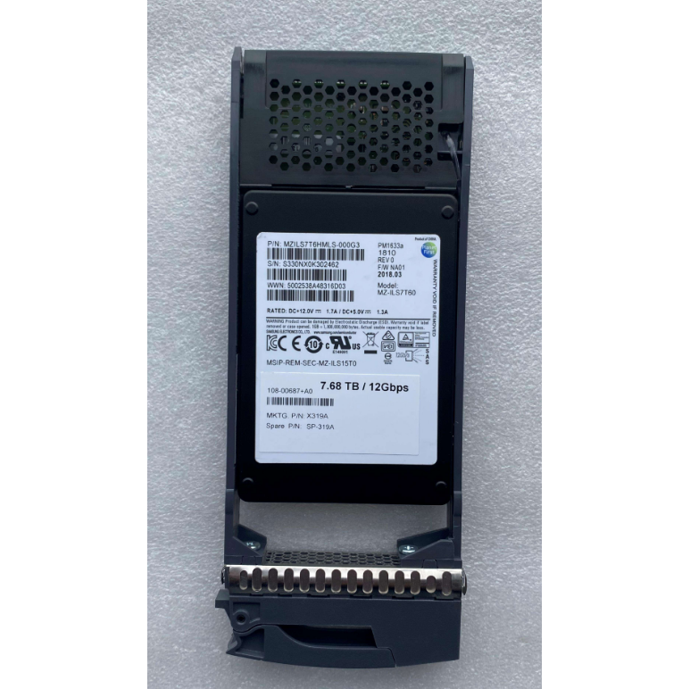 NetApp 108-00687 (part number X319A-R6, disk body model PM1643) is a high-performance hybrid NVMe solid state drive designed by NetApp specifically for its all flash storage systems. This model offers a capacity of 7.68TB and uses a standard 2.5-inch U.2 interface. Based on the mature PM1643 platform, it provides excellent read-write performance and reliability for NetApp AFF series storage arrays, making it suitable for demanding mixed workload environments.