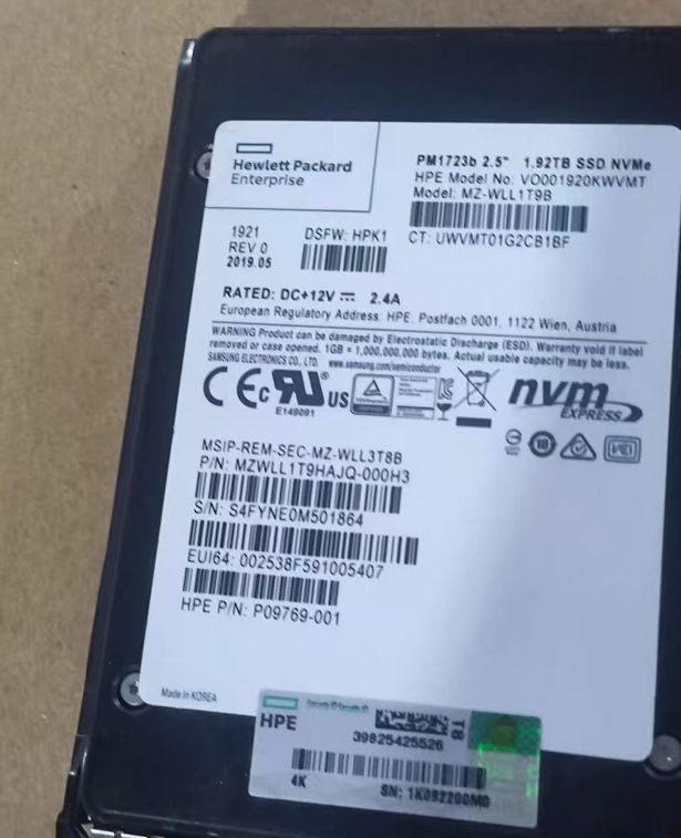 HPE P09769-001 (disk model: PM1723B) is a top performance NVMe solid-state drive launched by HPE (Hewlett Packard Enterprise). It adopts a PCIe HHHL (half height, half length) add-on card form and directly interacts with the CPU through PCIe 3.0 x4 channels. This model has a capacity of 1.92TB and is designed for extremely demanding read-write hybrid workloads, providing industry-leading low latency, high throughput, and excellent durability, suitable for scenarios such as high-performance computing (HPC), artificial intelligence (AI), and critical business databases.