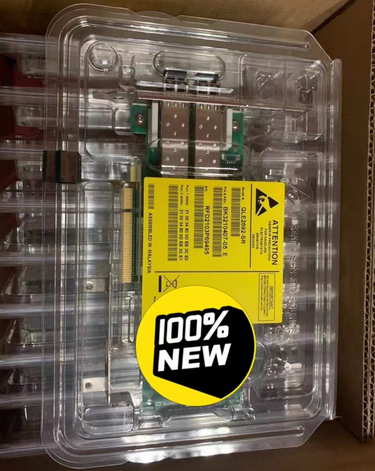 Model: QLE2694-SR (Short distance multimode fiber, SR=Short Range, Using LC interface).
