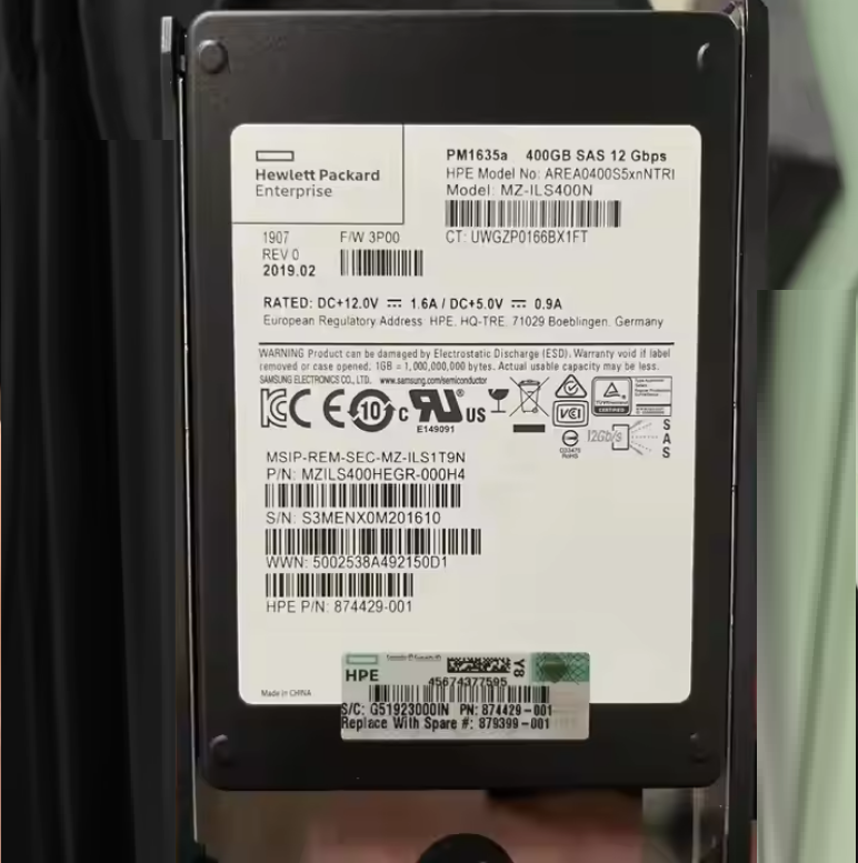 HPE 874429-001 (disk body model PM1635a) is a high-performance, low latency enterprise class NVMe solid state drive, belonging to the hybrid model in HPE NVMe product line. It is designed specifically for HPE ProLiant Gen9 and Gen10 server platforms, aiming to provide critical upgrades from SAS/SATA to high-performance NVMe storage for these platforms. This hard drive provides an excellent balance between read and write performance, making it suitable for enterprise level applications, virtualization environments, and database systems that require sustained high performance and exceptional reliability.
