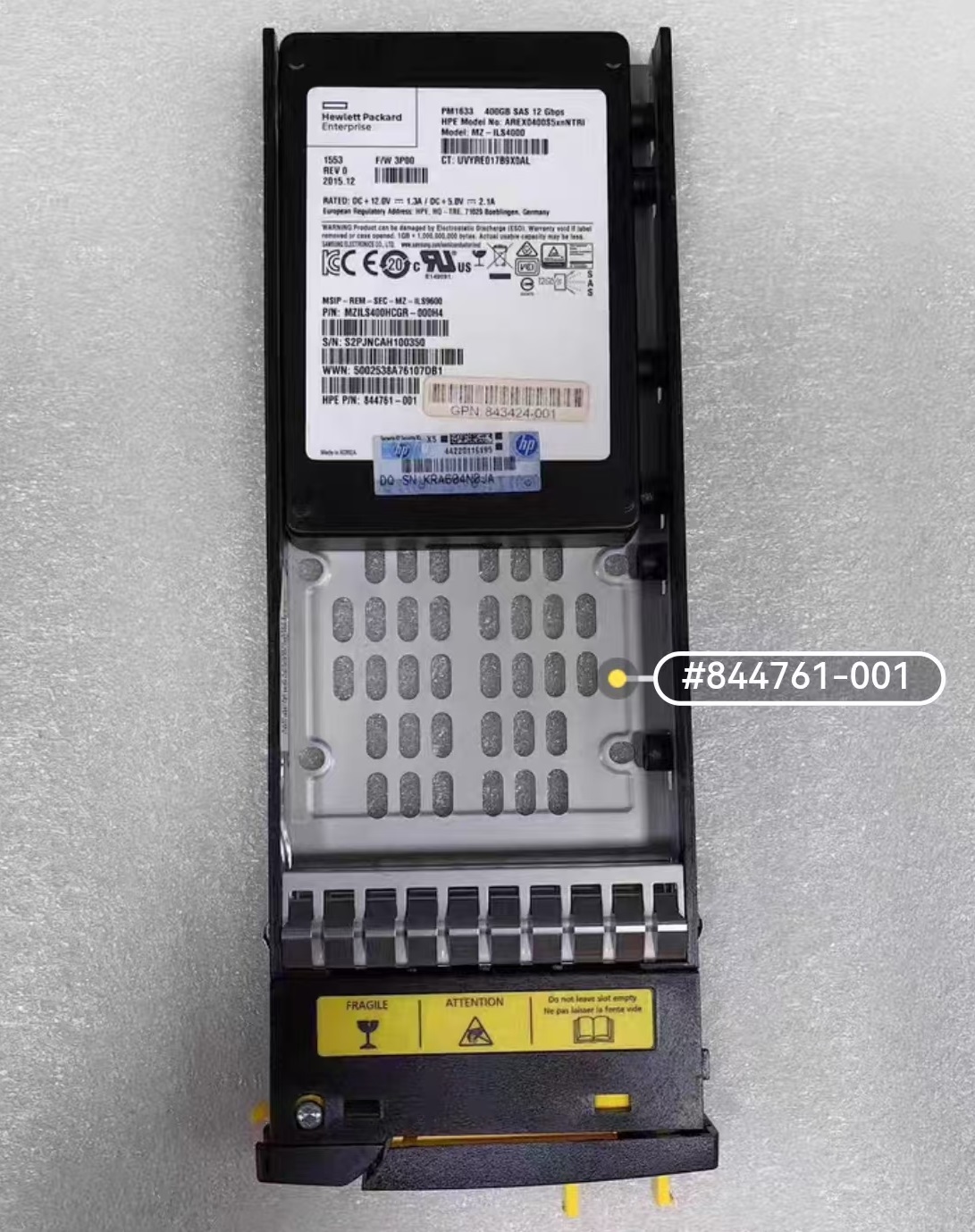 HPE 844761-001 (disk body model PM1633) is an early enterprise grade NVMe solid-state drive and one of HPE's first NVMe solutions to be introduced to the market. It is positioned for read intensive workloads and designed specifically for the HPE ProLiant Gen9 server platform, aiming to provide ultra-low latency and high-speed I/O performance far beyond SATA and SAS interfaces for critical business applications. This hard drive represents HPE's exploration of enterprise level storage acceleration in the early days of NVMe technology, known for its proven stability and reliability.